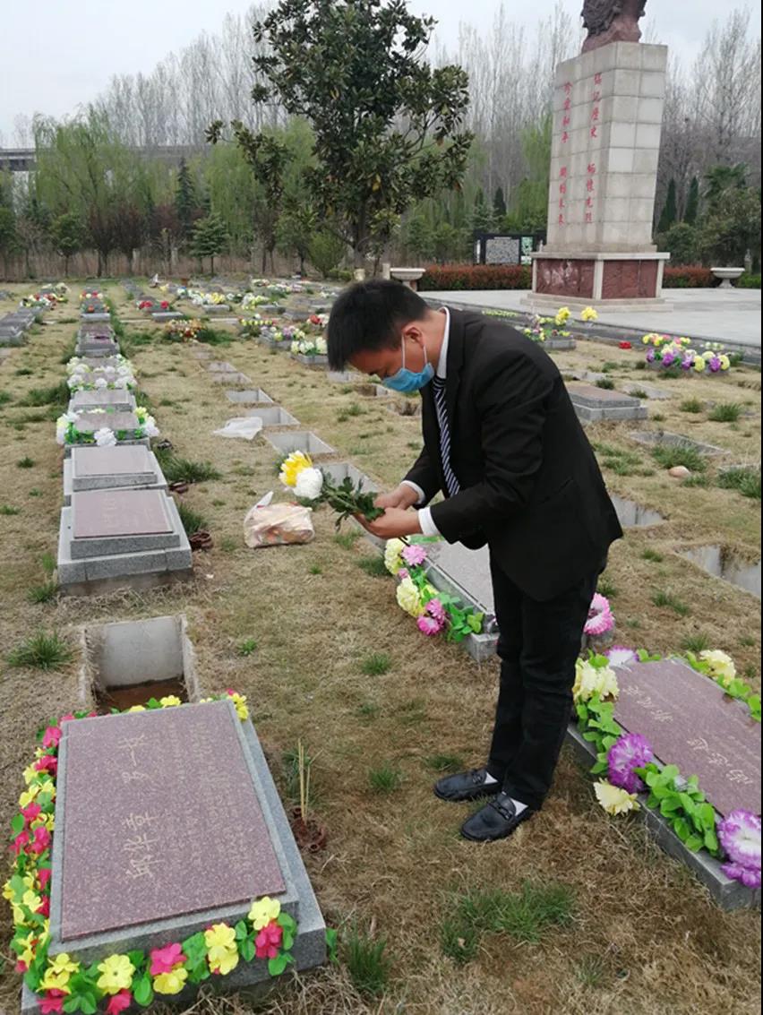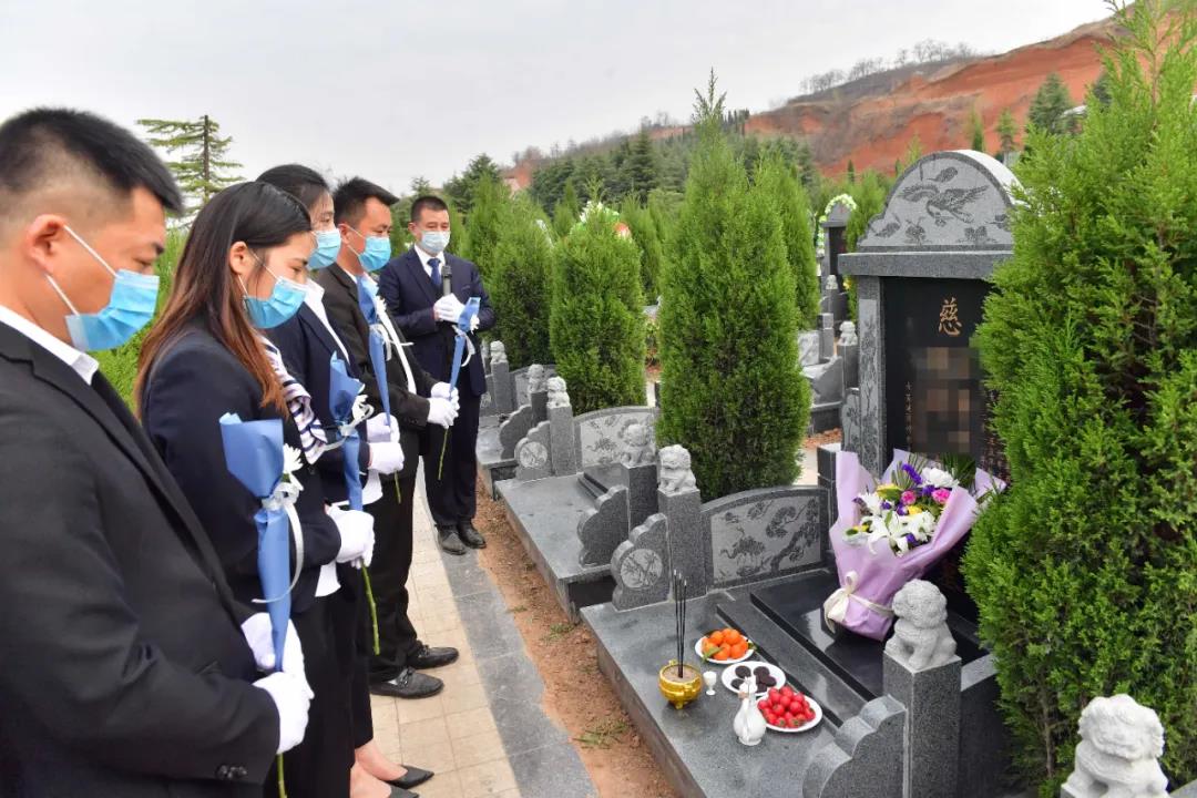 對(duì)墓碑進(jìn)行清理并除草、獻(xiàn)上一支鮮花、鄭重鞠躬三下……上午,北邙南山陵園公墓里的一座墓碑前,北邙南山陵園公司幾名工作人員一絲不茍地做著“代祭掃”工作