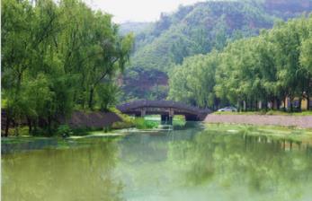 洛陽北邊的邙山上有條金水河。河源于新安縣境內,上游有“養(yǎng)馬水庫”、“舜王廟水庫”,下游有“金水河水庫”,像一條銀線串起的幾顆明珠,各庫區(qū)都形成了水光瀲滟、樹木蔥郁的消夏景點。