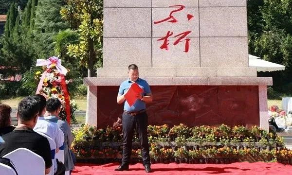 上午9時(shí)3分,在洪亮的國(guó)歌聲中,中共洛陽(yáng)市委統(tǒng)戰(zhàn)部副部長(zhǎng)龐明新、民革洛陽(yáng)市委會(huì)副主委孫國(guó)平向主題紀(jì)念碑敬獻(xiàn)花籃,并與在場(chǎng)100多位民革黨員一道鞠躬致敬。