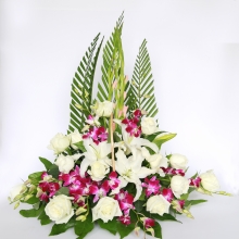 花的色彩要素淡,以白色為主,黃色為輔,點綴以紫色。組成清明節(jié)花束的花材可以從這幾種中來選擇:馬蹄蓮、康乃馨、唐菖蒲、菊花、孔雀草、玫瑰、勿忘我等。清明節(jié)掃墓用的花,一般是為了表達一種懷念之情,花色以白為主,如白色的馬蹄蓮、白色或黃色的玫瑰均可,白、黃交錯,加幾枝紫色的勿忘我。這樣一束花,擺放在親人墓前,寄托了深深思念之情。